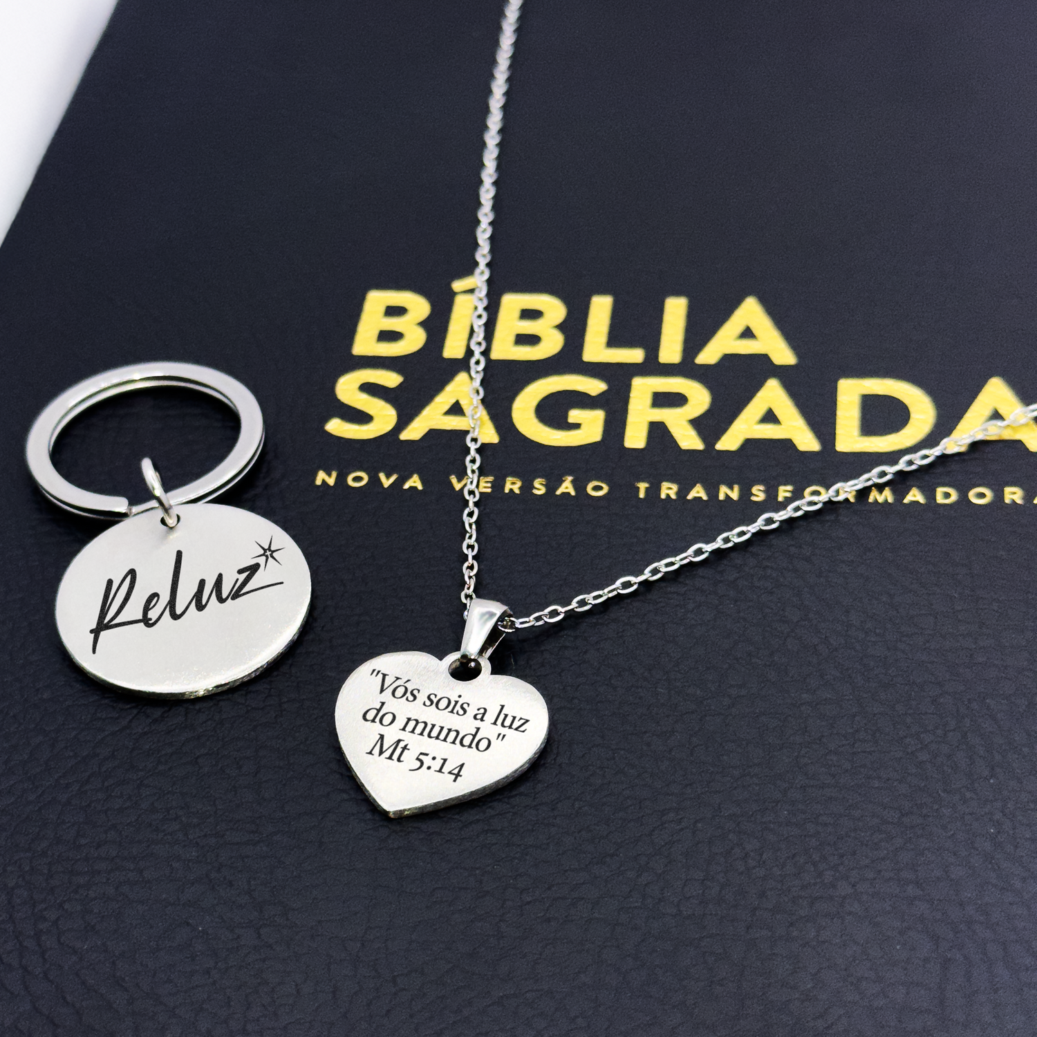 Chaveiro redondo de 25mm em aço escovado, com versículos gravados que carregam fé e significado. Um acessório resistente e cheio de propósito para acompanhar você no dia a dia.