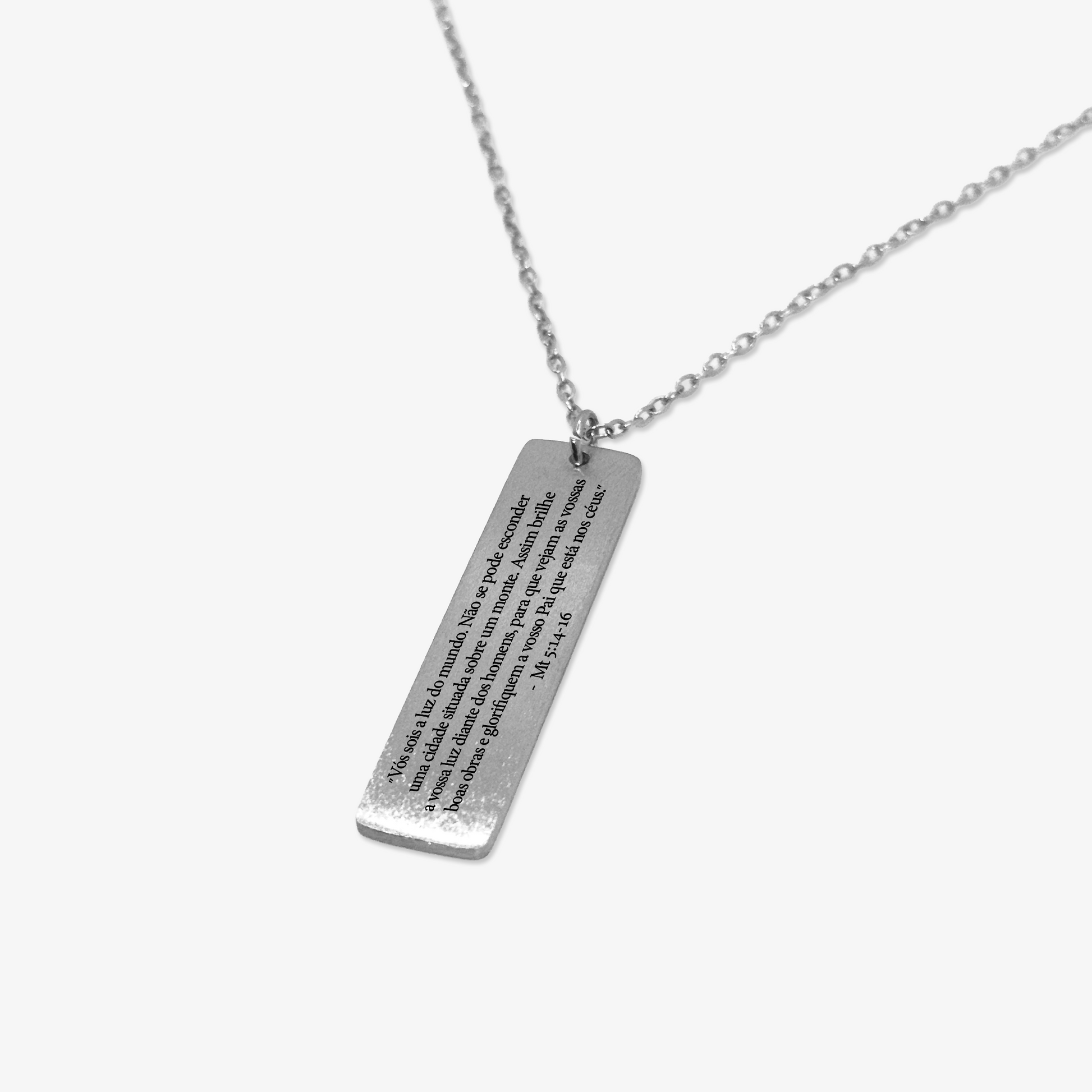 Com design minimalista e acabamento em aço escovado, esta plaquinha traz versículos gravados que refletem fé e significado. Uma joia discreta e atemporal, perfeita para expressar sua espiritualidade no dia a dia.