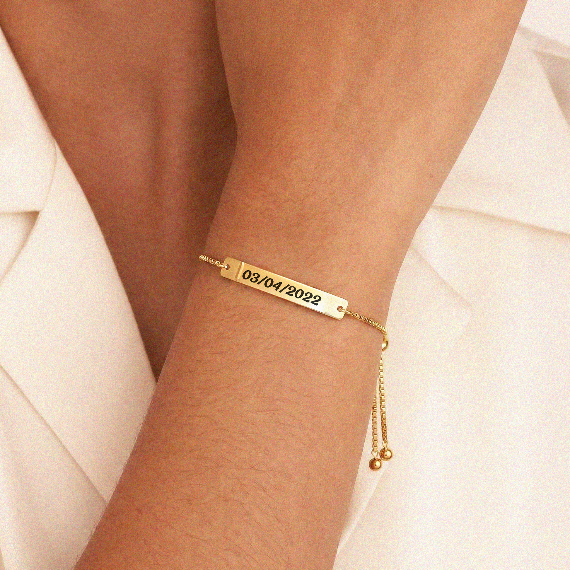 Um nome, uma data, uma frase que te representa — agora gravados em uma pulseira feita para acompanhar você todos os dias.
