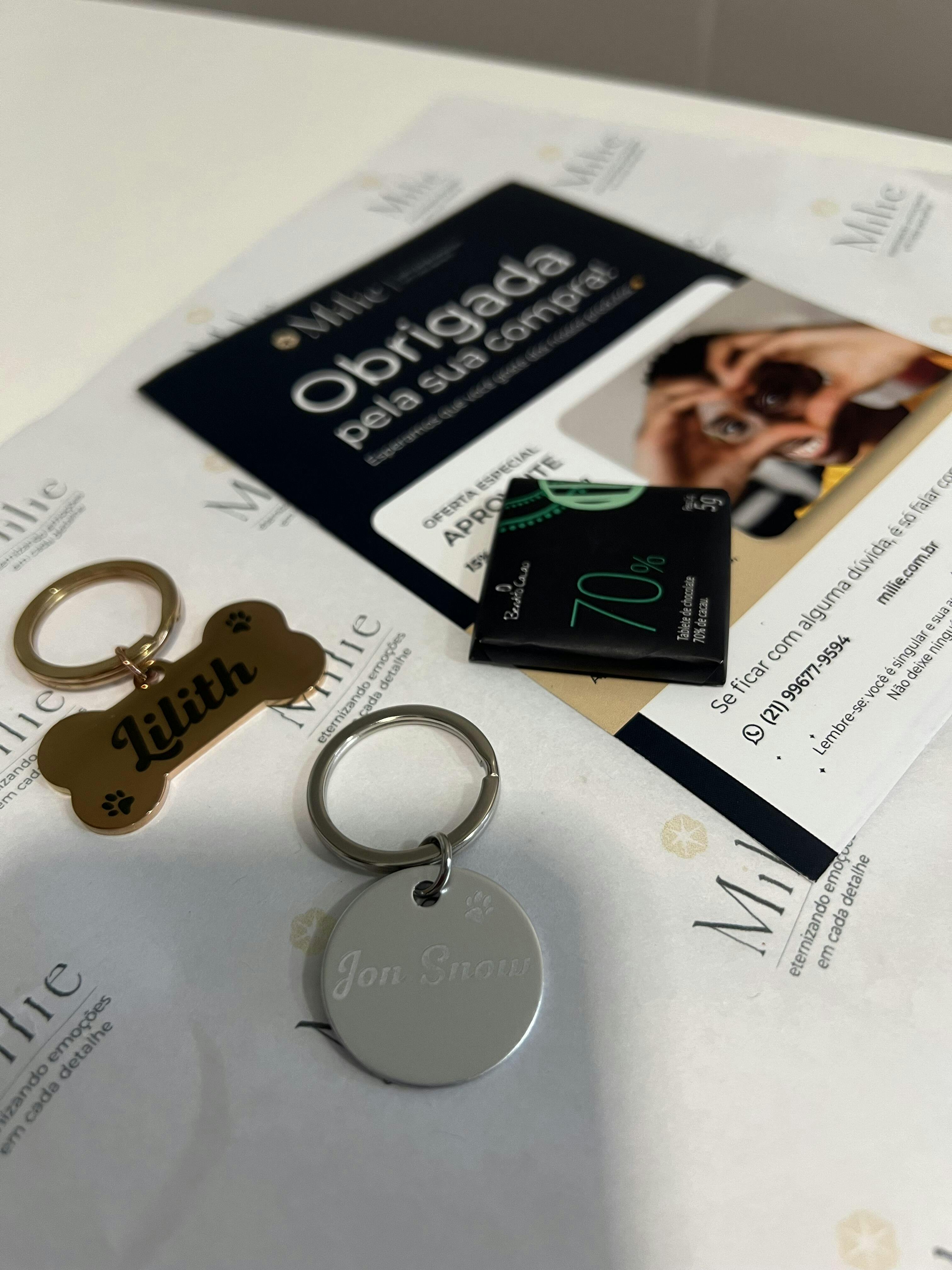 Basta nos enviar o nome para gravação na frente e as informações de contato para gravação no verso!